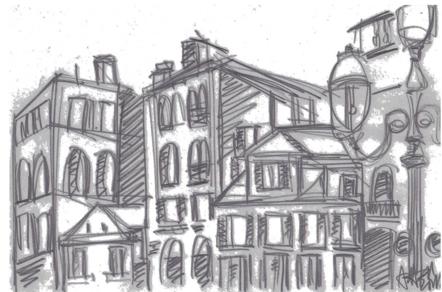 The idea of capturing an environment for me there is not so much to do with precision but more with few lines that give us the proper idea and ambiance that is required to understand or even to immagine the place we are picturing. There are landscapes as well that just exist in my immagination, not knowing from where are coming.